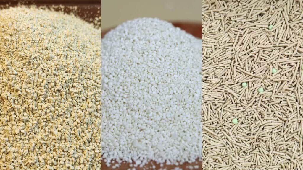 • Clay: The granules are tiny and sand-like. They get stuck in paws and you find them in your bed. Gross, right?