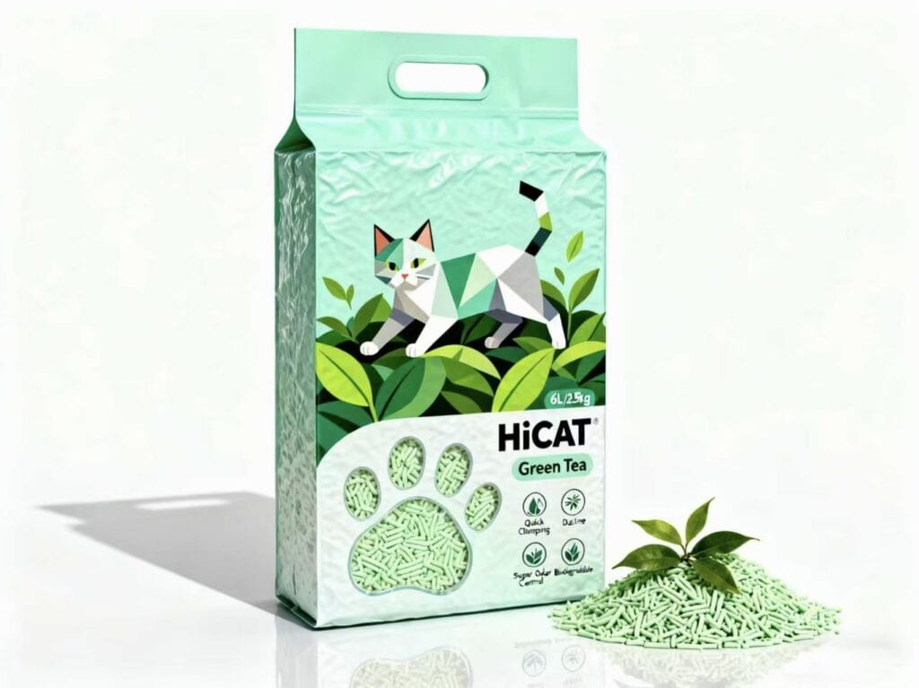 Tofu vs cassava cat litter handles smell differently. Tofu is porous—it soaks up the ammonia. Plus, at QingkePet, we can infuse it. Our Green Tea Tofu Cat Litter is a best-seller because the tea polyphenols naturally neutralize odor.