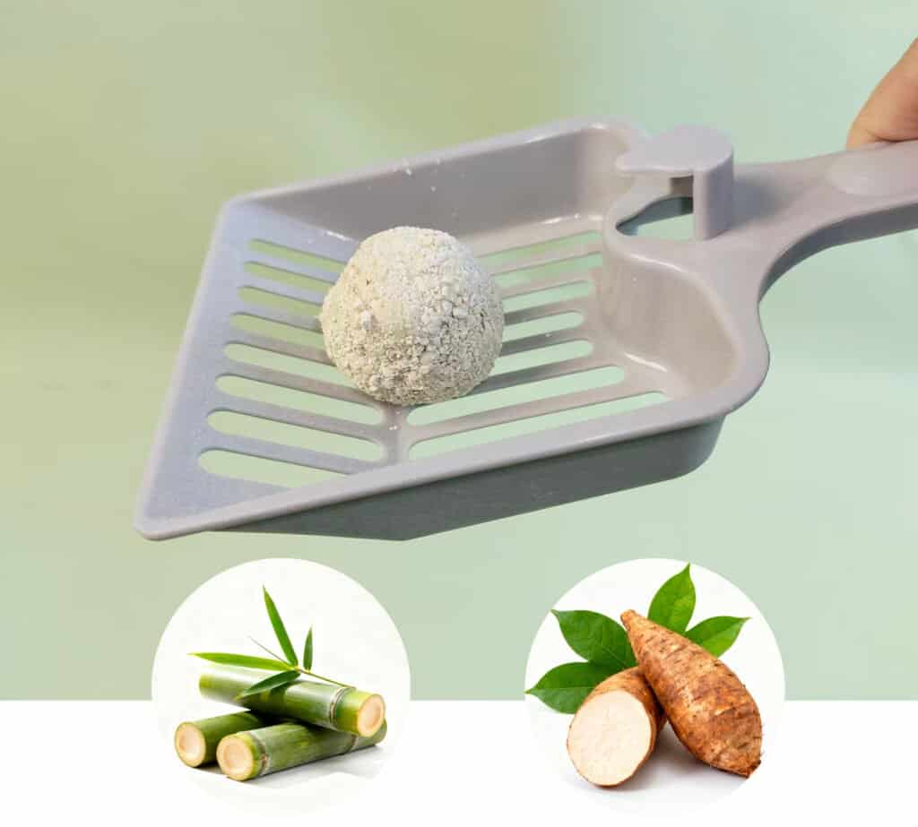 Pure bamboo fiber, cassava, and corn starch. No synthetic fillers. Your line stays truly natural with plant-based cat litter.